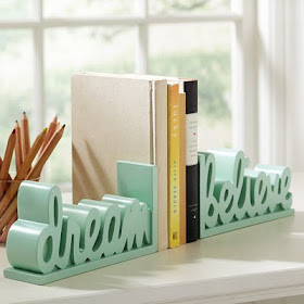 Dream + Believe Word Bookends keep your favorite reads upright. Made of green mist polyresin. 6.5" wide x 2.5" deep x 4.25" high. $39. Buy
