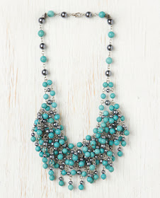 Cluster Statement Bib is a chain and pearl necklace with gorgeous pearl cluster center. Pearl colorway has fringe gemstone and etched pendant details. Lobster claw closure. $68. Buy